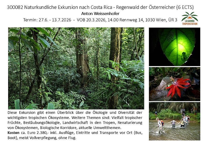 Die Tropenstation La Gamba ist eine Forschungs-, Lehr- und Weiterbildungsinstitution der Universität Wien am Rande des Regenwaldes der Österreicher in Costa Rica. In einem der artenreichsten Tieflandregenwälder Mittelamerikas gelegen, bietet sie ideale Voraussetzungen für Feldforschungen, Kurse und Seminare.